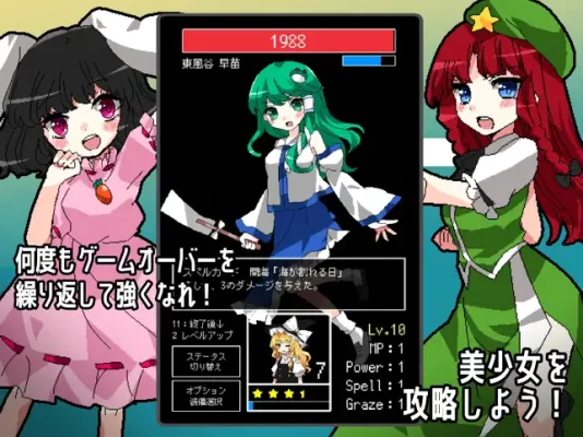 東方プロジェクトのキャラクターとの交流:ゲームを通じて、東方プロジェクトの魅力的な女の子たちと直接対話できます。彼女たちとの会話やイベントで彼女たちの個性やストーリーを知ることができ、ファンとしての愛着や親近感を深めることができます。