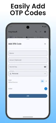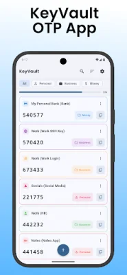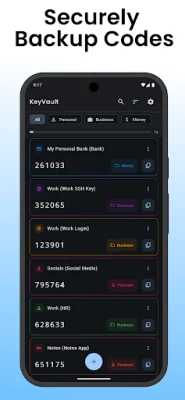 KeyVault is a secure and convenient application that allows you to store all your 2FA and OTP codes in one place. With this app, you no longer have to worry about losing or forgetting your codes, as they will be safely stored on your device. You can easily scan QR codes to add new codes or manually enter them into the app. This makes it easy to add all your codes from different accounts and services into one central location.