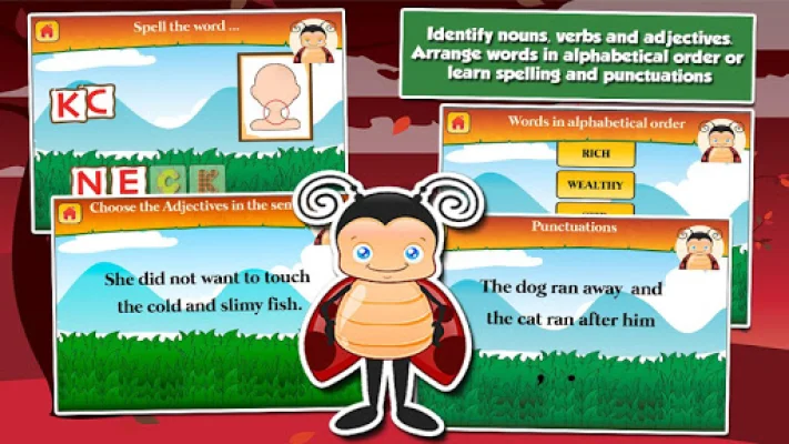 This app is designed to help second graders improve their understanding of key concepts in Math and English. It offers a variety of interactive activities that are both entertaining and educational. These exercises cover a range of skills such as identifying sentence parts, verb tenses, punctuation, synonyms and antonyms, spelling, and basic math operations. By engaging in these activities, children can develop their thinking, language, and math skills in both written and oral form.