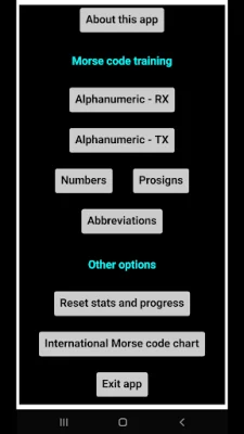 The app offers different training options, including alphanumeric, numbers, CW prosigns, and abbreviations. The alphanumeric training includes all letters, numbers, and common punctuation marks. The numbers training focuses solely on numbers, while the CW prosigns and abbreviations training covers commonly used prosigns and abbreviations in Morse code.
