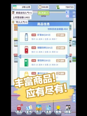 This application is a simulation game where players can experience the fun of running a convenience store. The store offers a wide variety of products, including drinks, snacks, groceries, toiletries, and even alcohol, similar to the popular online grocery store, Hema. With 8 major categories and 64 subcategories, the store aims to cater to the different preferences of its customers and continuously generate profits.