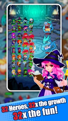 The world’s first 32-hero idle RPG is an innovative game that combines elements of role-playing and strategy. The game follows the story of Charlie, a lifetime intern who wakes up in another world and discovers that he is the weakest hero in isekai history. Despite this, he is determined to take on the powerful Demon King by building his own squad of heroes and using sheer numbers to defeat him.