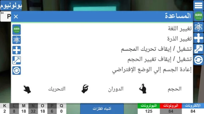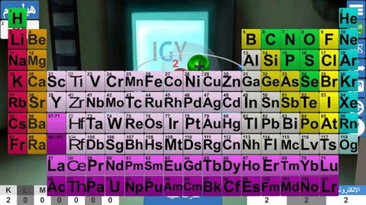 This application, "Periodic Table 3D (Arabic - English)," is a comprehensive and interactive tool that provides a detailed representation of the periodic table. It offers information about each element in both Arabic and English languages, making it accessible to a wider audience. The elements are grouped into distinct categories, allowing users to easily navigate and understand the chemical landscape.