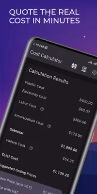 PrintCalc is an application that helps users calculate the cost of 3D printing projects. It has several key features that make it a valuable tool for businesses and individuals alike. These features include the ability to calculate material costs, electricity costs, depreciation, labor costs, painting costs, failure rates, margins and taxes, and manage multiple printers and filament spools. It also has a history feature for saving and sharing past quotes, customizable settings for local currency and work schedule, and an onboarding process and multilingual support for ease of use. One of the main features of PrintCalc is its ability to calculate material costs. This is done by taking into account the price of filament, the weight of the filament used, and the grams used in the printing process. This allows users to accurately estimate the cost of materials for their projects. Another important feature is the ability to calculate electricity costs. This is based on the print time and the power of the printer. By factoring in these variables, users can get a more accurate estimate of their electricity costs for each project. PrintCalc also takes into account depreciation, spreading the cost of the printer over its expected years of use. This helps users avoid hidden costs and accurately calculate the true cost of their projects. Labor costs are also included in PrintCalc, taking into account the time needed for setup, post-processing, and painting. This allows users to factor in the cost of their time and labor when quoting prices for their projects. The application also has a feature for calculating painting costs, whether it be based on an hourly rate or per batch/piece. This allows users to accurately estimate the cost of painting their 3D printed objects. PrintCalc also has a failure rate feature, which applies a configurable percentage to cover failed prints. This helps users avoid losses from failed prints and ensures that their quotes are accurate and cover any potential failures. In addition to these features, PrintCalc also offers customizable margins and taxes, the ability to manage multiple printers and filament spools, and a history feature for saving and sharing past quotes. It also has customizable settings for local currency and work schedule, as well as an onboarding process and multilingual support for ease of use. Overall, PrintCalc is a valuable tool for anyone involved in 3D printing. It allows users to quote prices quickly and professionally, avoid hidden costs and losses from failures, and get final sale prices that include VAT and card fees. It also offers a free trial and assistance with configuring printers and filaments, making it a user-friendly and accurate solution for estimating 3D printing costs.