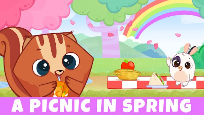 With Bibi.Pet, your child can explore the beauty of nature while playing educational games. Enjoy a picnic in the spring, relax on the beach in the summer, admire the colors of fall, and unwrap presents under the Christmas tree in the winter.