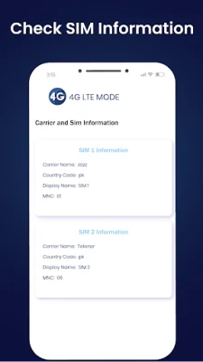 In addition to these features, the app also offers options to change network settings and switch between 4G/3G/2G modes. This can be useful for users who want to stay in a specific network or improve their network connection. The app also provides detailed information about the user's SIM card, signal strength, and data usage.