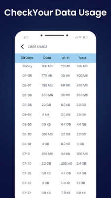 The app includes a data tracking feature, allowing users to monitor their mobile data and network signal usage in a clear and easy-to-read interface. This helps users stay in control of their data consumption and avoid unexpected overage charges. The app also offers a WIFI speed test to measure mobile connectivity and internet speed, using common internet CDN servers for accurate results.