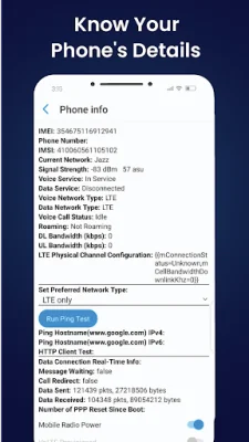 This app is designed to help users optimize their mobile data usage and ensure a stable and reliable network connection. With the ability to switch to 4G LTE mode, lock the phone in a stable network signal, and access advanced network configurations, this app offers a range of features to improve the user's mobile experience. Additionally, it allows users to check their internet speed and cellular signal strength, as well as providing details about their SIM card and data usage.