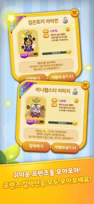 450여종의 귀여운 프렌즈들을 모아 컬렉션을 완성하는 것이 이 어플리케이션의 또 다른 재미입니다. 1성부터 5성까지 다양한 프렌즈들을 모아보세요. 또한 한정, 스페셜, 레어 프렌즈까지 모아보세요. 각각의 프렌즈들은 특별한 능력을 가지고 있어서 컬렉션을 완성하는 재미를 더해줍니다.