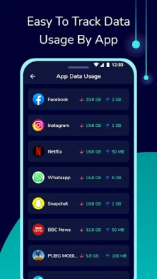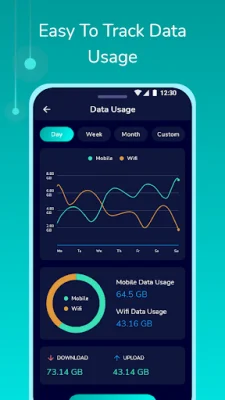 In addition to the speed test, the app also offers a data usage monitoring feature. This allows you to track your WiFi and mobile data usage over a period of time. You can also view data usage for specific apps during a selected time frame. This can help you identify which apps are using the most data and adjust your usage accordingly.
