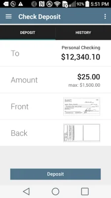 One of the most convenient features of this app is the ability to deposit checks directly from your Android phone or tablet. This eliminates the need to physically visit a branch or ATM to deposit a check, saving you time and effort.