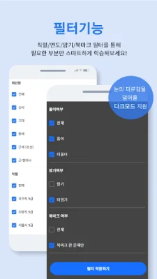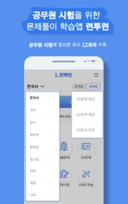 For a more comfortable studying experience, the app offers a dark mode that reduces eye strain. It covers a wide range of subjects such as Korean history, Korean language, English, public administration, administrative law, criminal procedure law, criminal law, constitution, society, local autonomy, introduction to education, introduction to police studies, and the Korean history proficiency exam.