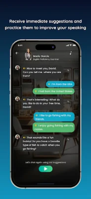 For a more in-depth analysis of their speaking skills, users can access comprehensive reports on their pronunciation, fluency, and more, along with an English level certificate. The app also allows users to review and replay conversations with suggestions for enhancement, with a focus on achieving native-like fluency.