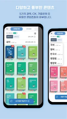 The app covers various categories, including Korean, Korean history, English, public administration, administrative law, and exams for specific positions such as police and firefighters. It is constantly updating and improving, and the creators encourage users to share and review the app to help with its development.