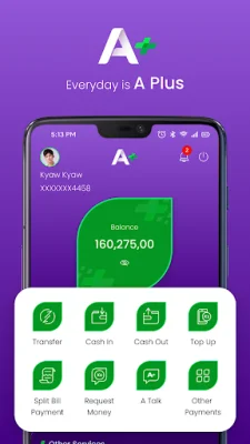 With A PLUS, users can also easily transfer money between their own A PLUS accounts, to other A PLUS accounts or wallets, or to anyone using just the receiver's name, phone number, and NRC. This makes it easier to send and receive money without having to remember complicated account numbers or bank codes.