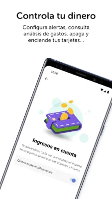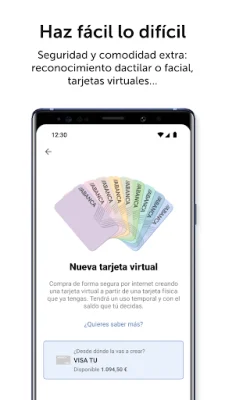 The app also offers features for managing your cards, including the ability to turn them on and off with just one click, transfer money from your credit card to your account, and increase your card's available credit. You can also split card payments into installments, create and manage virtual cards for online purchases, and modify daily limits for payments and withdrawals. The app also allows you to track your card expenses by category and brand.