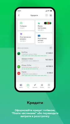 Застосунок також пропонує кредитні послуги, такі як розстрочка та кредит готівкою, а також можливість оформлення товарів та послуг у партнерів через сервіс "Плати частинами" без переплат. І якщо у вас виникли питання, ви можете звернутися до операторів 24/7 через Viber, Telegram або iMessage.