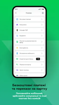 Застосунок також пропонує різноманітні функції, такі як додавання карток в Apple Pay, зміна ПІН-коду, блокування та розблокування карток, налаштування безпеки та зміна кредитного ліміту. Крім того, ви можете накопичувати кешбек, поповнювати картку з інших банків та купувати eSim.