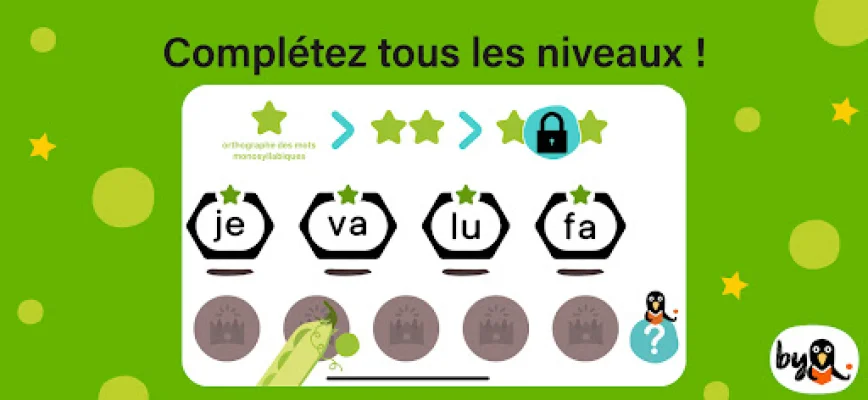 The game is divided into three levels, starting with syllables, then regular words, and finally irregular words. This allows children to gradually progress and build upon their spelling skills. The app uses repetition as a key method for learning, which has been proven to be effective in language learning.