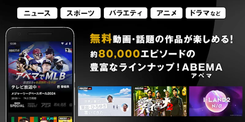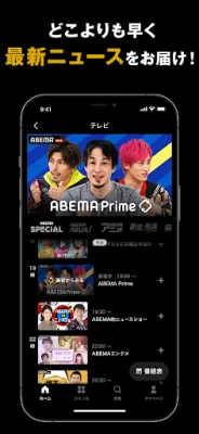 「ABEMA」は、テレビのイノベーションを目指し、新しい未来のテレビとして展開している動画配信事業です。登録は不要で、国内唯一の24時間編成のニュース専門チャンネルをはじめ、オリジナルのドラマや恋愛番組、アニメ、スポーツなど、多彩なジャンルの約20チャンネルを24時間365日放送しています。また、オリジナルエピソード数は国内発の動画サービスで日本No.1を誇り、総エピソード数は常時約80,000本以上を配信しています。 ABEMAでは、注目の新作映画や国内外の人気ドラマ、話題のアニメなど豊富なラインナップの作品や、様々な音楽や舞台のオンラインライブも展開しています。時間に囚われることなく、いつでも作品を楽しむことができるだけでなく、スマートフォンやPC、タブレット、テレビデバイスで場所に囚われることなく番組を視聴することができます。 さらに、月額960円のABEMAプレミアムに登録すると、限定コンテンツを見ることができたり、「動画ダウンロード機能」や「見逃しコメント機能」が利用できるなど、よりABEMAを楽しむことができます。 ABEMAは、テレビ、アニメ、映画を家で観る時間がない方や、すきま時間に観たい方、話題のアニメを先行放送で観たい方、地上波にはないオリジナルのテレビ番組やドラマを観たい方、様々なジャンルの作品を観たい方、テレビが家にないので動画配信アプリで観たい方、地上波で観られないような作品を観たい方、人気の過去作品を一気に観たい方、無料でたくさんの作品を観たい方、アニメやドラマ、テレビ番組をよくアプリで視聴する方、おうち時間が増えたので家で観たい方、話題の作品や流行りの作品を先取りしたい方、懐かしの作品を観たい方、通勤や通学時間に観たい方、スマホやタブレットで観ることができる配信アプリを探している方におすすめのテレビ番組/映画/アニメ/ドラマの配信サービスです。 ABEMAでは、テレビやその他様々なデバイスでも視聴することができます。詳しくは対応デバイスページをご覧ください。 会員登録不要で誰でも簡単に気になるチャンネルを視聴することができます。また、Wi-Fi環境下では、動画の読み込み時間が少なく、スムーズな番組視聴やチャンネルの切り替えが可能です。ただし、通信環境によって画質や通信速度が異なることがあります。 ABEMAでは、稲