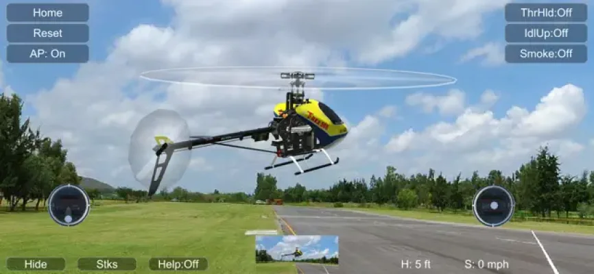 It's important to note that this is not a game, but a realistic simulation of flying RC models. It may take some time to learn how to use the controls, and they are not designed to be like arcade-style games. The onscreen control sticks are simply indicators and do not need to be touched or held onto while flying. Users can slide their finger anywhere on the right or left side of the screen to control the corresponding stick.