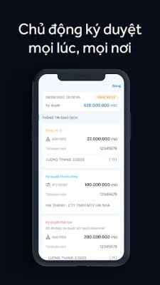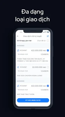 The MOBILITY TRANSACTION APPROVAL application allows entrepreneurs to easily approve various types of transactions, such as money transfers, payments, and trade finance, from anywhere and at any time. The user interface is modern and user-friendly, making it convenient for entrepreneurs to manage their business transactions.