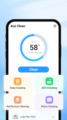 Ace Cleaner is a powerful and efficient mobile application that helps users optimize their phone's performance by cleaning up unnecessary junk and freeing up storage space. With just one click, users can easily get rid of temporary files, useless junk, and other data that clogs up their phone's memory. This not only helps improve the overall speed and performance of the device, but also creates more space for important files and applications.