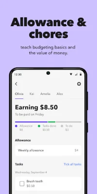 The app also provides a prepaid card for children to practice their new skills in the real world, with over 45 designs to choose from. This card can be used fee-free for transactions overseas, making it a convenient option for family vacations. Children can also track their own cash flow within the app, learning valuable money management skills.