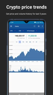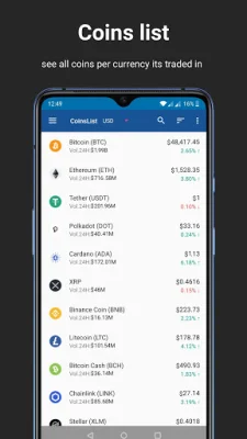 Cryptocurrency Tracker supports a wide range of coins, including popular ones like Bitcoin, Litecoin, Ethereum, Ripple, and Monero, as well as over 1500 others. The app also offers access to numerous exchanges, such as Bitstamp, Binance, Coinbase, and Kraken, all in one convenient location. And with global currency support, users can trade and track their assets in their preferred currency.