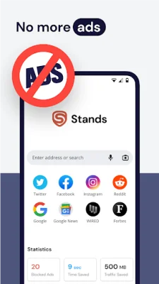 Stands is an ad blocker browser that offers a seamless and ad-free browsing experience on mobile devices. With Stands, users can avoid annoying ads such as pop-ups, banners, and full-screen videos, allowing them to focus on what matters most. This ad blocker also helps to improve browsing speed, reduce data usage, and prolong battery life. One of the standout features of Stands is its total control over ad-blocking preferences. Users can customize their settings and decide which ads they want to see, giving them complete control over their browsing experience. This makes Stands a fantastic ad blocker for Android devices. In addition to blocking ads on popular social networks and YouTube, Stands also offers a customizable web browser. This means users can enable or disable ad blocking for specific sites, such as pop-up windows or YouTube ads. This level of customization sets Stands apart from other ad-blocking solutions. For those concerned about privacy, Stands has a strict privacy policy and end-user license agreement in place. Users can rest assured that their data is protected while using the app. Additionally, Stands offers a support center and customer support via email for any questions or concerns. When compared to other ad-blocking solutions, Stands stands out for its effectiveness and resource usage. It is designed to be fast and private, making it the ultimate ad blocker for mobile devices. Users can also support their favorite content creators by managing their whitelists and allowing ads on specific sites. Overall, Stands is a comprehensive ad blocker browser that offers a smoother and more enjoyable browsing experience on Android devices. With its customizable features, privacy protection, and excellent customer support, Stands is a top choice for those looking to eliminate ads and enhance their mobile browsing experience.