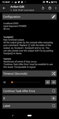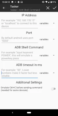 When using this plugin, it is important to trust the device and keep the timeout set as is. The output of the console can be viewed and reused within Tasker by accessing %output1, %output2, etc. or by iterating over %output() using a for loop. The plugin also generates two key files for a secure ADB connection to the devices.