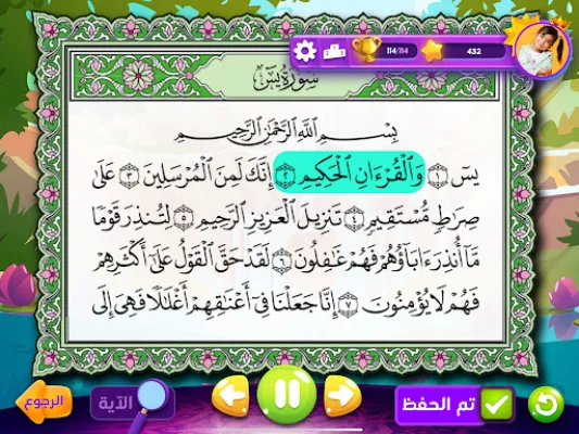The digital content of the Quran used in the app is approved by the King Fahd Printing Press Complex, ensuring its accuracy and authenticity. The latest version of the app includes more than 15 new features, such as adding the full Noble Quran with 30 chapters, a new control panel for children, and 114 backgrounds dedicated to each surah to make learning more engaging and stimulating for children. The app also has six stages, including electronic games, to encourage and motivate children to memorize the Quran.