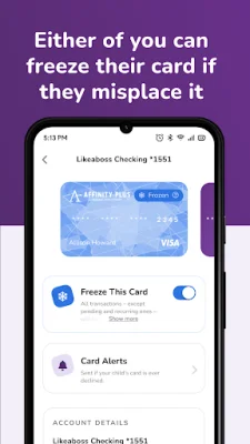 Kids can learn about banking and how to be smart with money through short videos on the app. They can also transfer money between their own Affinity Plus accounts and even send money to their parents if they need to pay them back. Parents can set spending limits for their child and assign chores, track their progress, and pay them when they're done. They can also freeze their child's debit card if needed.