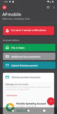 In addition, AFmobile allows you to connect to your reimbursement account funds. This means you can file claims and check your account balance directly from the app. You can also view recent Benefits Debit Card transactions and details, as well as store receipts or other documentation images for easy access.