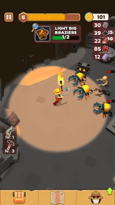 Welcome, brave adventurer! Are you ready to embark on an exciting journey through ancient tombs and uncover hidden treasures in this idle strategy game? Grab your trusty pickaxe, torch, and weapon and get ready to collect materials, battle scarabs, and explore a vast network of dangerous dungeons. This thrilling adventure game combines RPG-style character building with survival elements as you face waves of creatures in the desert.