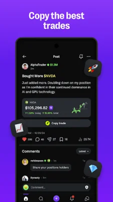 The app also offers a variety of top features, including customizable alerts and a chat feature where users can watch live stock charts and discuss them in real-time with verified shareholders. The feed feature automatically curates discussions around the stocks users own and surfaces trending topics to help users find new alpha.