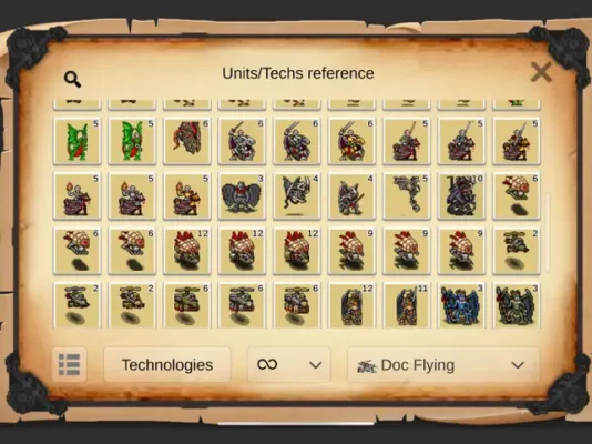 The game also has an Upgrades section where players can use gems to purchase hundreds of new units, technologies, and buildings. This includes some fun and unique units. The developer is open to suggestions for new units, such as historical heroes, and encourages players to join the forum or Discord to share their ideas.