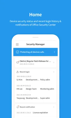 In addition to enhancing security, this feature also offers various tools to help admins improve their work efficiency. These include the ability to check the security status of the application, view recent login activity, monitor recent notifications, stay updated on announcements, and keep track of license expiration dates. By having all of these features easily accessible in one place, admins can efficiently manage and monitor the security and usage of the application.