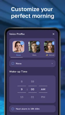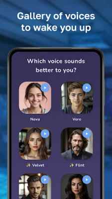The AI-generated voices come in different profiles such as calm, energetic, or playful, allowing users to select the one that best fits their morning routine. The app also features a talking clock that greets users with positive words and reminders, rather than mechanical beeps. Its modern interface is designed to reduce stress and promote a balanced wake up experience.