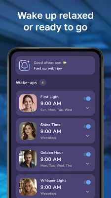 This application offers a unique and innovative way to wake up in the morning. Instead of traditional loud alarm sounds, users can choose from a variety of AI-generated voices to match their mood and routine. This personalized wake up experience makes the app more than just an alarm clock, but a personal morning buddy.
