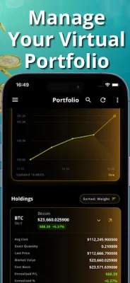 The app also offers a virtual portfolio simulation, where users can build and manage a complete portfolio with simulated money. This allows for testing different strategies, tracking allocations, and measuring performance against real market conditions. It is a risk-free way to practice execution and learn from results.