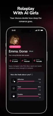 The app also features three core stats - affection, trust, and passion - that deepen the bond between the user and their AI girlfriend. These stats can be earned through genuine connection and engagement, rather than shortcuts, allowing for a more authentic AI romance experience.