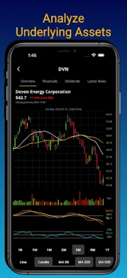 With Wall Street Options Predictor, you have access to comprehensive analysis tools at your fingertips. In addition to essential option details like strike price, premium, and expiration date, you can also utilize advanced analysis tools for each underlying asset. Our AI-powered price forecasts give you a glimpse into potential movements of the underlying assets, while intuitive charts and indicators allow for in-depth technical analysis. Stay updated with the latest news and financial data to stay ahead of market trends and make confident decisions.