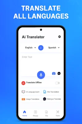 The All Languages Translator app is a comprehensive translation tool that simplifies global communication. It offers various translation modes, including text, voice, photo, and document translation, in over 100 languages. With this app, users can easily connect with people from different cultures without language barriers. It also features a phrase book with essential expressions for daily communication. One of the key features of this app is its support for multiple languages. It allows for real-time translation in text, voice, and chat, making it suitable for travel, study, and business purposes. The app ensures accurate and seamless communication across different languages. The text translation feature supports all languages and provides fast, accurate, and reliable translations for messages, documents, and webpages. This eliminates language barriers and enables effortless communication across the world. The voice translation feature allows for instant translation of spoken words into any language in real-time. This makes it perfect for conversations and travel, as users can simply speak and listen to communicate with people from different countries. The photo translation feature is a convenient tool for translating text from images. Users can snap a photo or upload one, and the app will quickly detect and translate the text into their chosen language. This feature is useful for signs, menus, and documents. The app also supports multi-format file translation, allowing users to translate various file types, including DOCX, XLSX, PPTX, TXT, CSV, and PDF. This makes it a versatile tool for translating different types of documents. The screen translation feature enables users to translate anything displayed on their screen in real-time without switching apps. This is a useful feature for those who frequently need to translate content from different sources. In addition to these features, the app also offers an offline translator, AI translator, and a phrase book for daily communication. The AI translator delivers fast, accurate, and natural translations for text, voice, and images. The phrase book provides ready-to-use expressions for everyday conversations, making it easier to communicate in any situation. Overall, the All Languages Translator app is a powerful and user-friendly tool for global communication. It supports various languages and offers a range of features to make translation quick, accurate, and convenient.