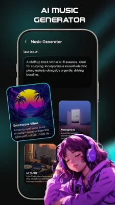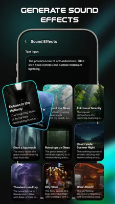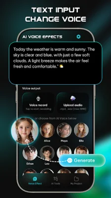 The built-in AI music generator is another exciting feature of this app. You can create music tracks simply by describing your style, or design unique sound effects by entering text input and letting the AI Voice Changer bring your ideas to life.