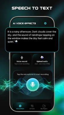 In addition to voice-changing capabilities, the app also offers advanced tools for creators. You can type any text and convert it into natural speech using lifelike AI voices, or record and instantly transcribe your words into text. This is perfect for content creators, note-taking, or adding subtitles to your videos.