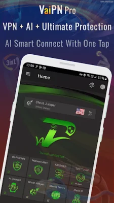 Become a Digital Ghost and Take Control of the Internet with Vaipn Pro AI VPN! This powerful app combines VPN, Artificial Intelligence (AI), and Advanced Security with over 28 features to provide the next generation of cybersecurity. Say goodbye to subscriptions and hello to total freedom with a one-time payment for lifetime protection, an exclusive Static IP, and unrestricted access.