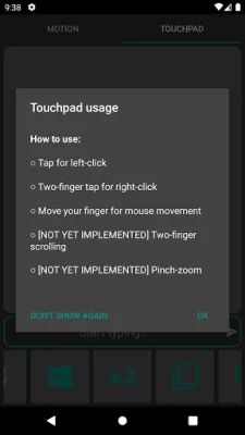 The app has various features such as left/right click, scroll input, and keyboard input. You can also use your phone's volume buttons to control the PC's volume and perform other actions like scrolling and clicking. A new feature has been added which allows you to use your phone's touchpad as a laptop touchpad to control the mouse.