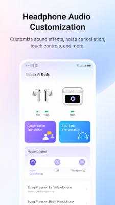 The app also offers easy noise cancellation control, allowing users to switch between Noise Cancellation, Transparency, and Off with just one tap. They can also set quick switching between Noise Cancellation and Transparency by long-pressing on an earbud. This feature is perfect for users who want to block out external noise and focus on the conversation or those who want to be aware of their surroundings while using the app.