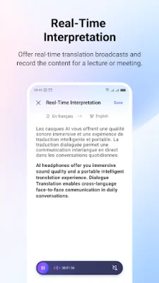 In addition to facilitating real-time translation for daily conversations, Dialogue Translation also offers simultaneous interpretation for conferences or lectures in a foreign language. Users can listen to the translated content through their earphones and also view the transcription and translation results in real-time on the app. This feature is especially useful for those who frequently attend international events or have to communicate with people from different linguistic backgrounds.